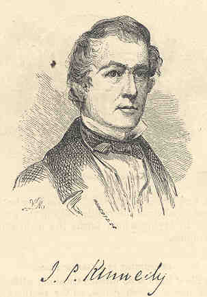 of American Literature 949 John Pendleton Kennedy, the first son of a Baltimore merchant, was born in Baltimore on October 25, 1795. His studies, interrupted by the War of 1812, were resumed after the war and he graduated from the College of Baltimore in 1812. He went on to study law and was admitted to the bar in 1816 and established a law practice. It has been said that "[h]e never grew fond of his profession, because his tastes were literary, and the office and the court-room proved too confining for him." [Mildred Lewis Rutherford, The South in History and Literature 126 (Atlanta: Franklin-Turner, 1907)(1906)]. In 1818 he undertook the editing of a small periodical, entered politics, and seems to have abandoned his legal career. He was elected to the Maryland legislature, then to Congress and became a prominent Whig party member. He served as Secretary of the Navy under President Fillmore and traveled throughout Europe meeting the literary people of his day. [Source: Evert A. & George L. Duyckinck, The Cyclopedia of American Literature 949-950 (Philadelphia: William Rutter & Co., 1880)(Vol. 1)] John