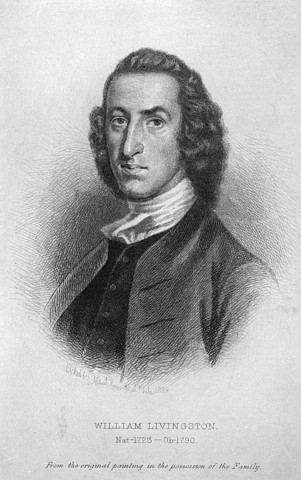 William Livingston First governor of New Jersey | lawyer | man of learning | poet William Livingston was born in Albany, New York and grew up there. He began his studies at Yale College in 1737 and graduated at the head of his class in 1741. Livingston read law with James Alexander in New York City, but feel out of favor with Alexander upon publication of an essay about the nature of his studies. He finished his legal studies with Mr. William Smith. During the course of these studies he published his poem, "Philosophie Solitude" in 1847 and was admitted to the New York bar in 1748. In 1752 he published, with William Smith, Jr., the first digest of the Colony Laws and began publication of a weekly political journal. He became involved in politics and served in the New York legislature in 1759-1760. With the influence of the Whig party in decline, Livingston moved to New Jersey in 1772 where he took up farming, albeit unsuccessfully. He returned to politics and represented New Jersey in the first and second Continental Congresses and joined the New Jersey Union forces in 1776. After the war he was the first governor of New Jersey and was a delegate to the Constitutional Convention in 1787. He died at Elizabethtown, New Jersey on July 25, 1790. [Sources: Webster's American Biographies 638-39 (Springfield, Massachusetts: Merriam-Western Inc., 1974)(Charles Van Doren, gen. ed.); Evert A. & George L. Duyckinck, The Cyclopedia of American Literature 161-165 (Philadelphia: William Rutter & Co., 1880)(Vol. 2)][See also: Samuel Kettell, Specimens of American Poetry 139-144 (New York: Benjamin Blom, 1829)(vol.1)](online text)] William Livingston William Livingston | William Livingston: New Jersey William Livingston (1723-1790) | A Biography of William Livingston William Livingston | Image of Livingston | Of Party Divisions Poetry William Livingston, Philosophic Solitude: or, The Choice of a Rural Life, a Poem (New York: printed by James Parker, 1747) Writings William Livingston, The Syntactical Atlas (Middlebury, Vermont: Copeland and Allen, printers, 1817) Carl E. Prince (ed.), The Papers of William Livingston (Trenton: New Jersey Historical Commission, 1979-1988)(5 vols.) Bibliography Theodore Sedgwick, A Memoir of the Life of William Livingston (New York: J. & J. Harper, 1833) [online text] Bibliography: Articles Milton M. Klein, The Rise of the New York Bar: The Legal Career of William Livingston, 15 (3) William and Mary Quarterly 334-358 (1958) Research Resources The